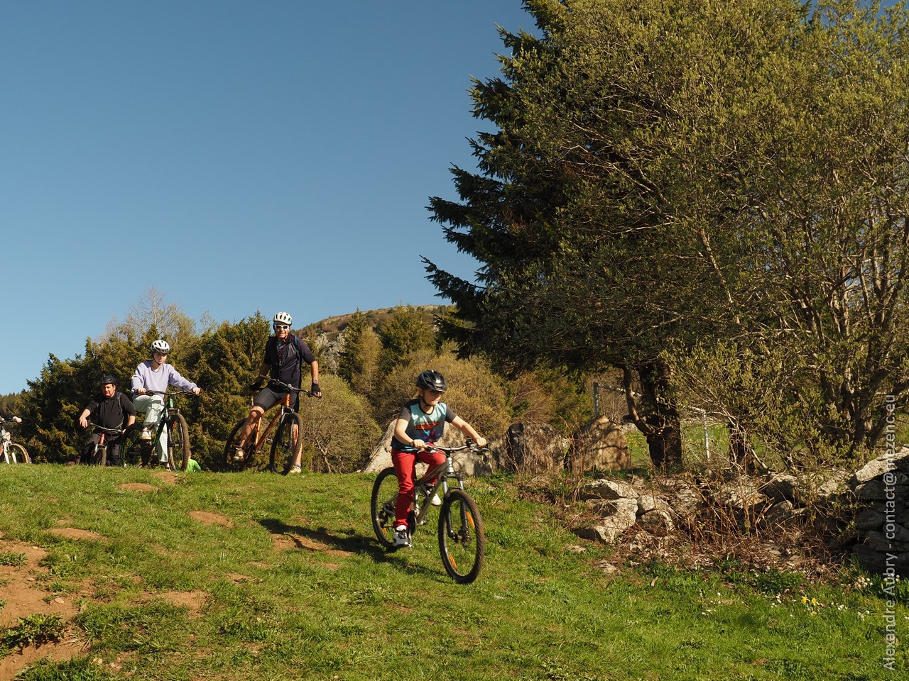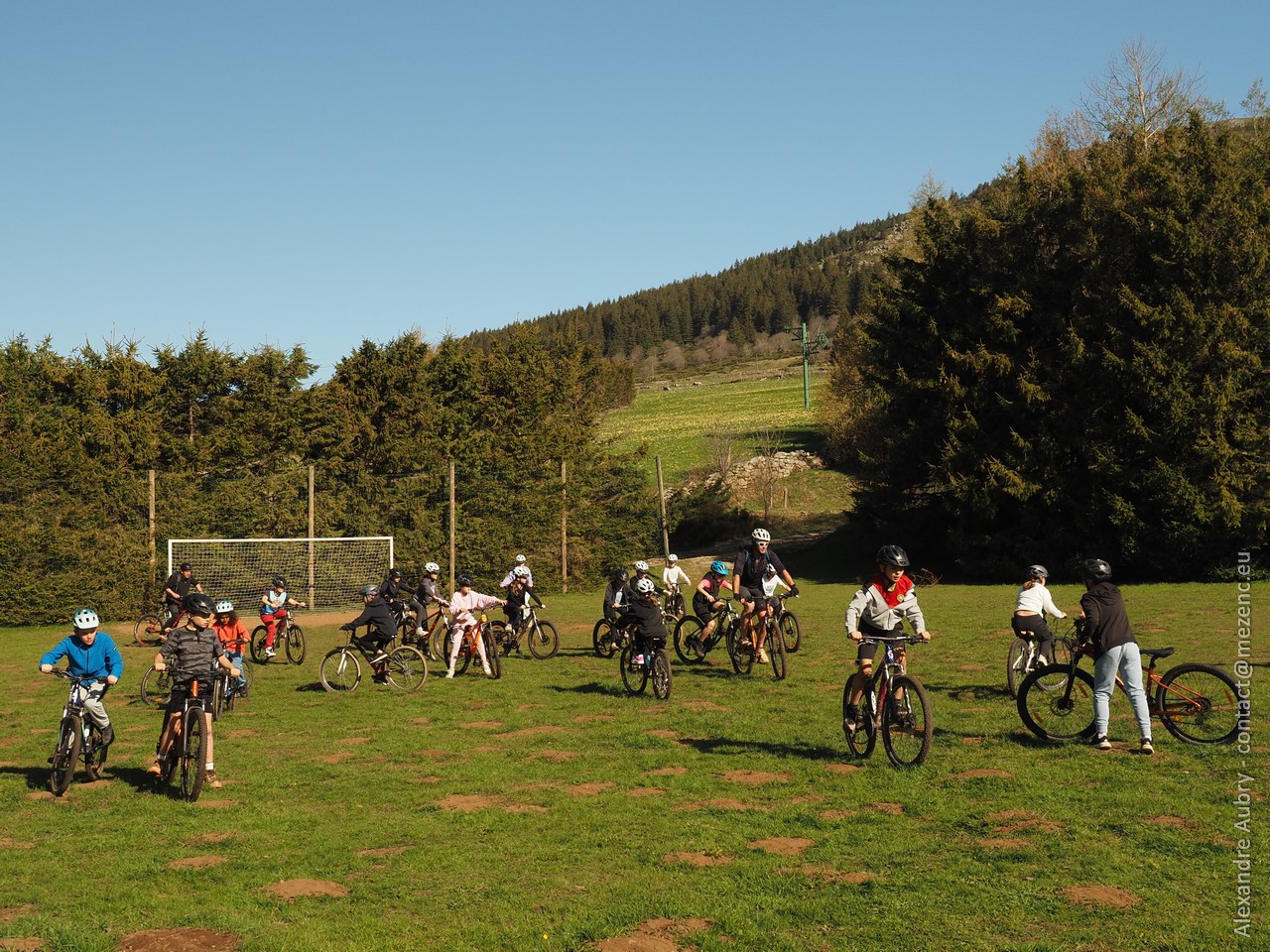 La journée se déroule à proximité des Chalets du Mézenc. Au départ, les enfants découvrent les activités sur notre terrain de foot puis traversent le village, roulent sur de petites routes et partent sur des pistes forestières.